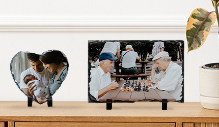 Nous vivons à l'ère du tout personnalisé. Des tasses à café aux étuis de téléphone, chacun est unique. Il est temps de dire adieu aux présentoirs à photos et à la redoutable galerie de portraits de famille. Custom-It réalise votre chef-d'œuvre sur-mesure en imprimant vos photos sur de l'ardoise. Ainsi, vous obtenez non seulement une belle œuvre d'art, mais aussi quelque chose qui deviendra un héritage parfait.